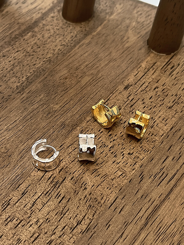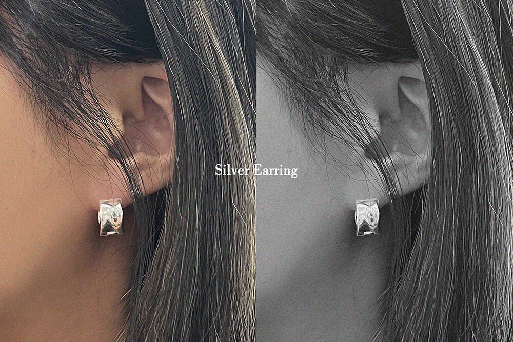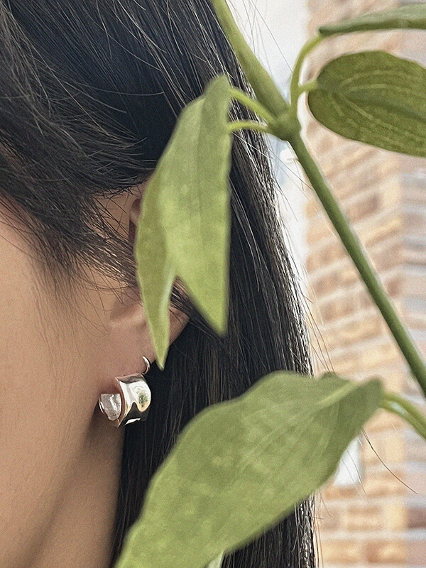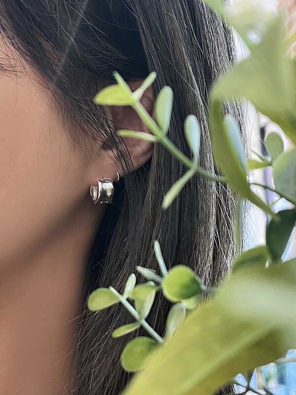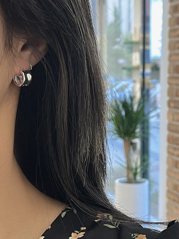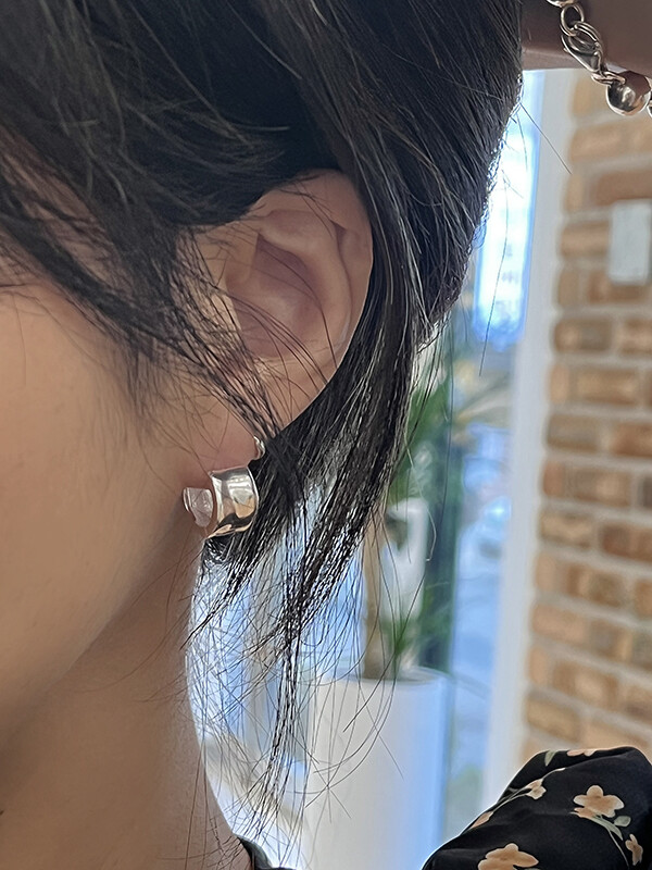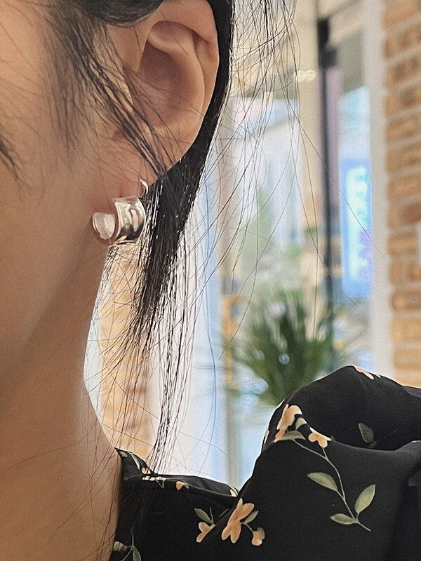실버 쉐입 볼드 원터치 심플 링 은 귀걸이