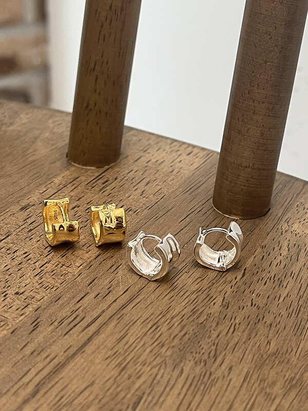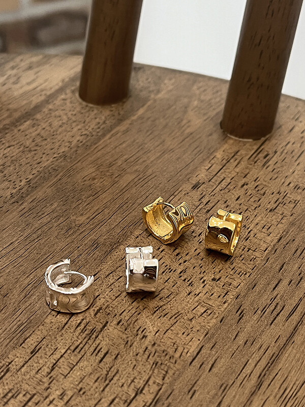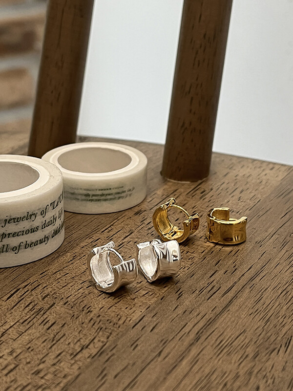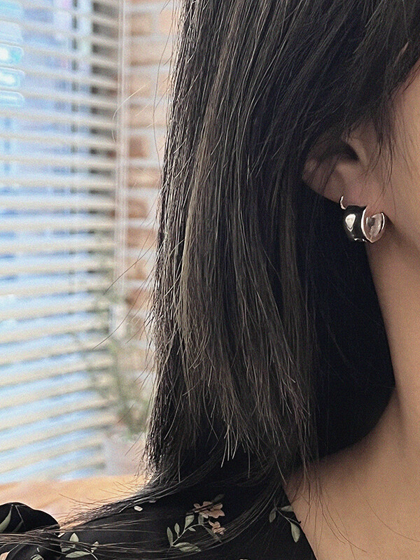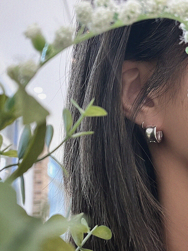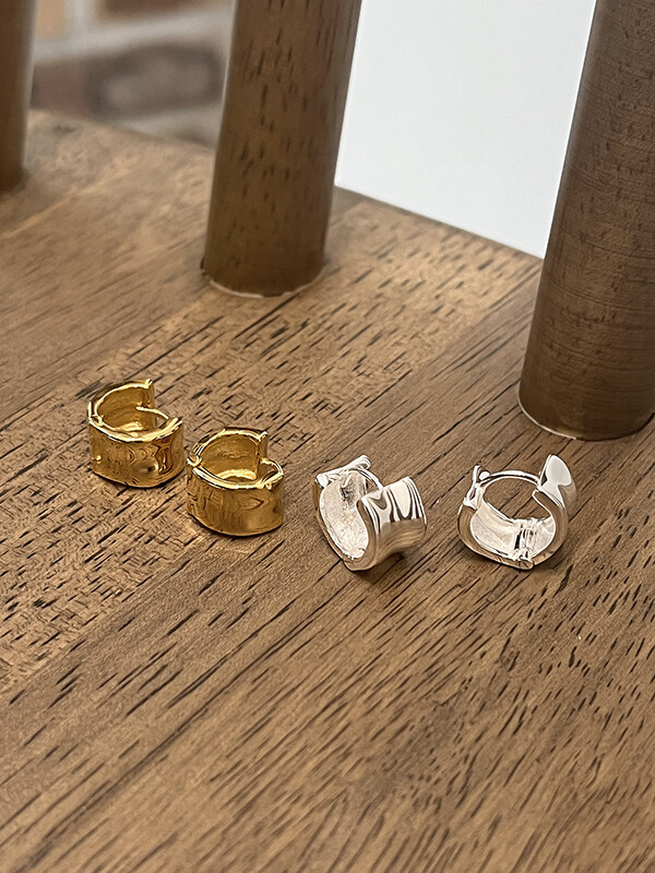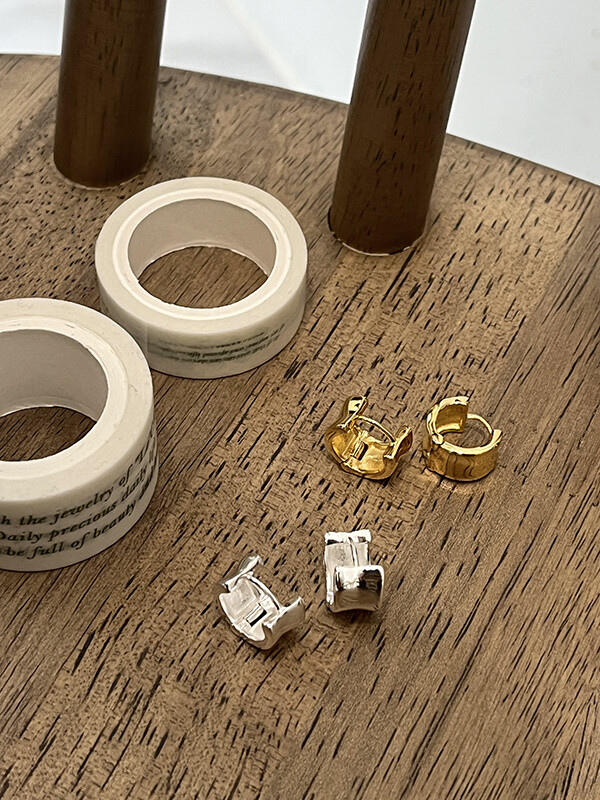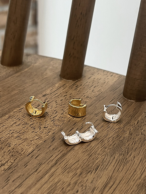 실버 쉐입 볼드 원터치 심플 링 은 귀걸이