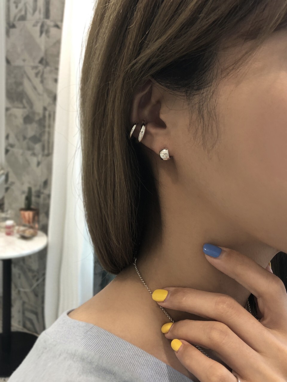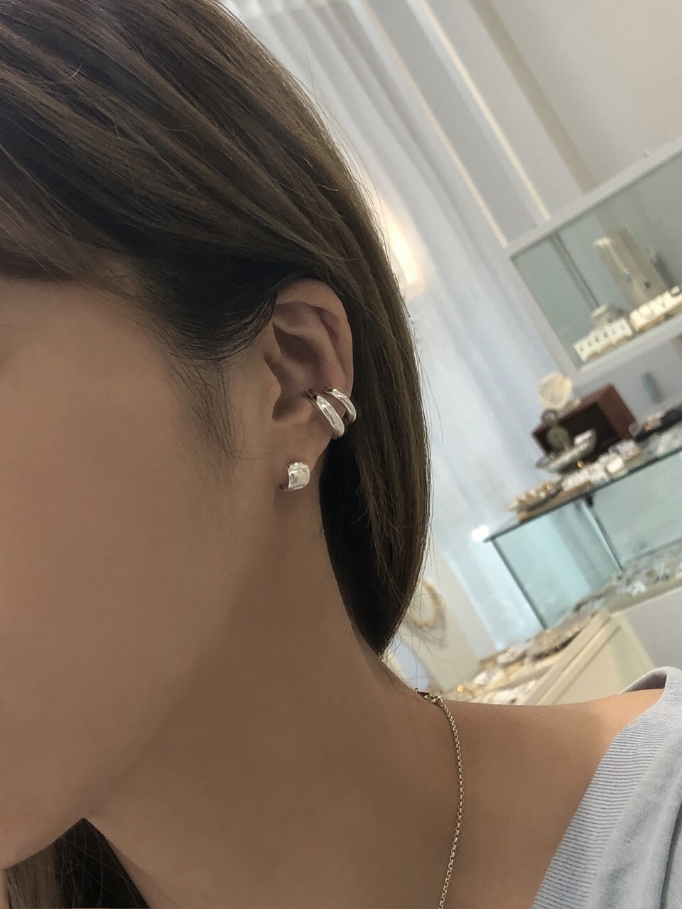 * 이어링 침이 거뭇하게 보이는경우는 본체와 붙이는과정에서 땜할때 열에 의하여 거뭇해지는 경우로